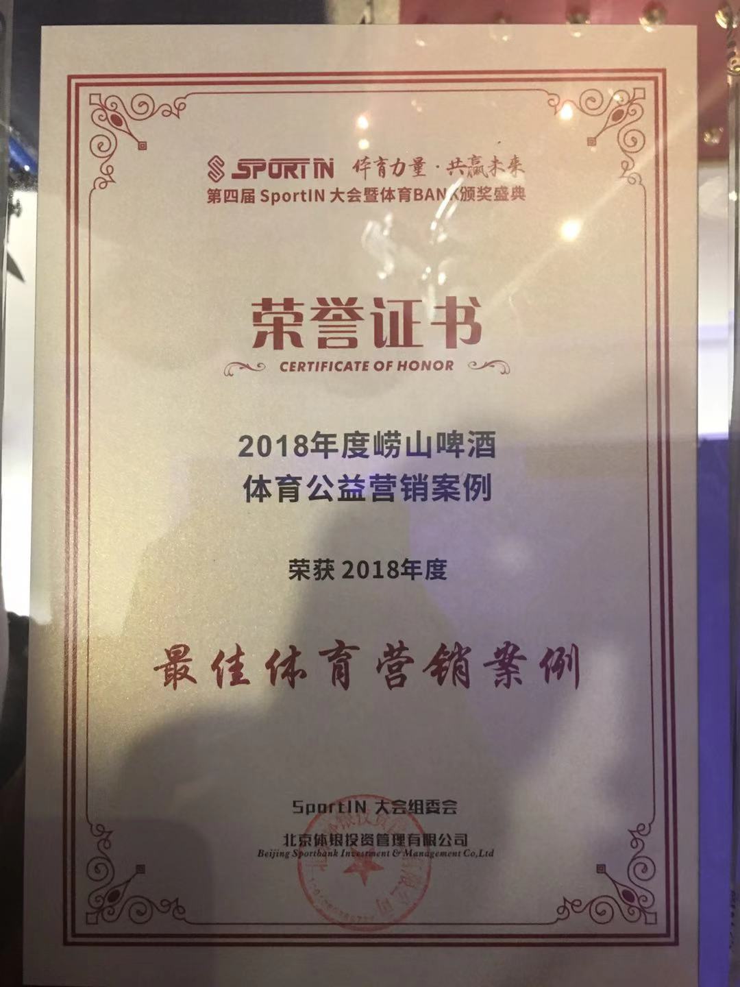 第一体育最终从众多竞争者中突出重围,获得了《2018年度最佳体育营销与经纪机构》奖,第一体育服务于崂山啤酒的营销案例获得了《2018年度崂山啤酒体育公益营销案例》奖。